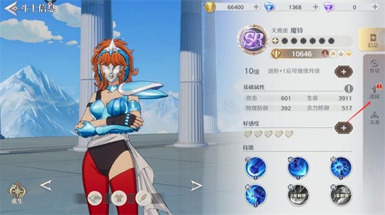 5、达到等级上限后需要对斗士进行进阶,切换到进阶界面;